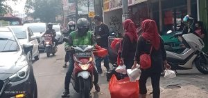 Sebanyak 600 Nasi box di berikan ke pengguna jalan baik pejalan kaki, R 2 maupun R4 yang melintas di jalan HOS Cokroaminoto Aminoto Ciledug.