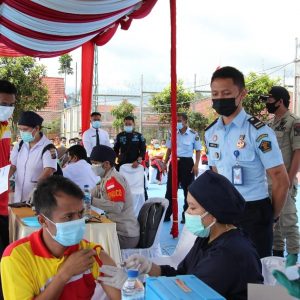 Sebanyak 250 warga binaan di Lembaga Pemasyarakatan (Lapas) Narkotika Kelas IIA Pematangsiantar, Kanwil Kenkumham Sumut divaksin Covid-19 jenis Sinovac untuk dosis satu, Selasa (31/8/2021).