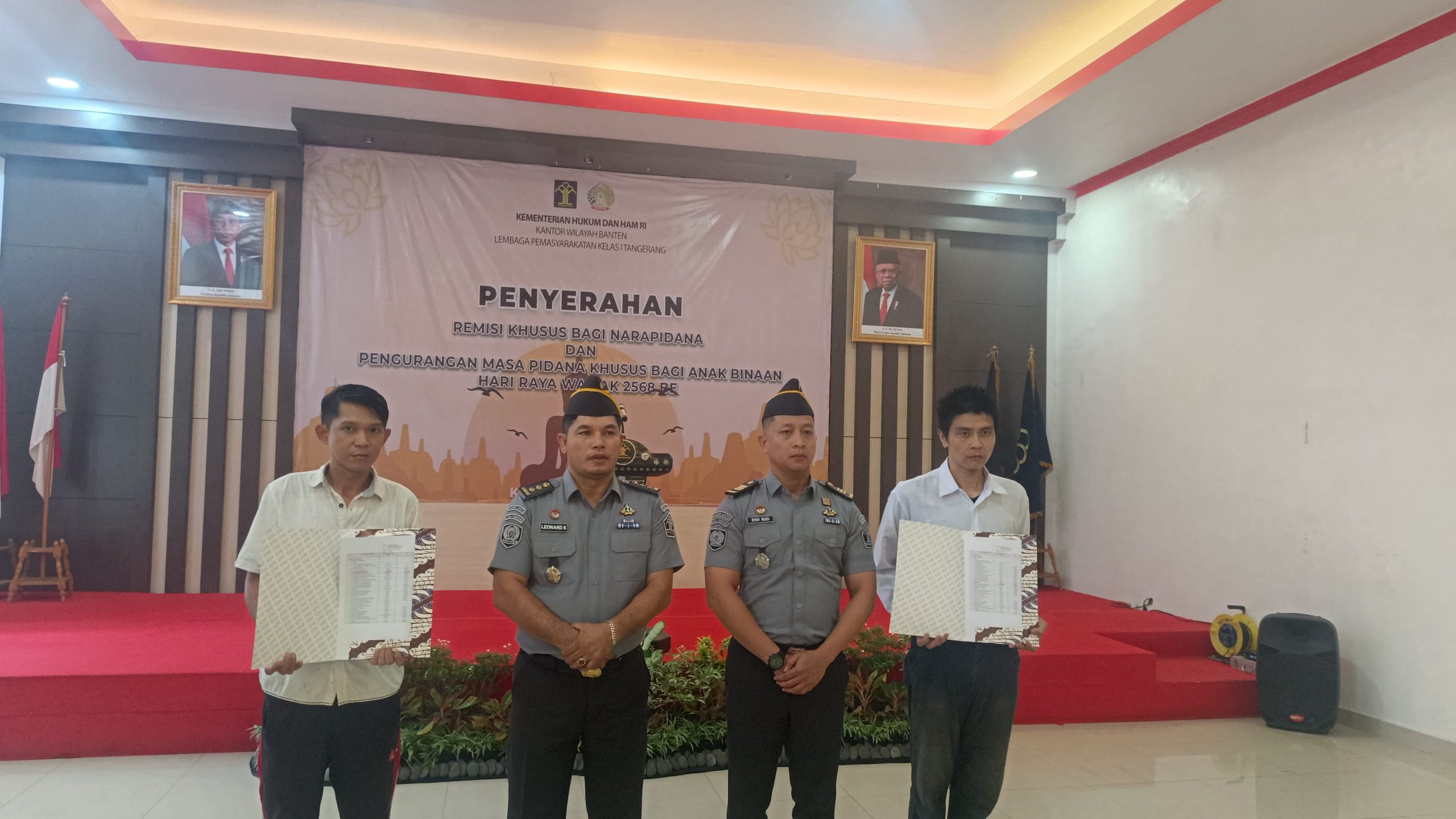 Kabid Pembinaan Lapas Kelas I Tangerang menjelaskan pemberian remisi atau pengurangan masa pidana diberikan kepada warga binaan sebagaimana diatur dalam Undang-Undang Nomor 22 Tahun 2022 tentang Pemasyarakatan, Permenkumham No 7 Tahun 2022 tentang Syarat dan Tata Cara Pelaksanaan Hak Warga Binaan Pemasyarakatan, serta Kepres No. 174 Tahun 1999 tentang Remisi. Kami berharap dengan pemberian remisi ini seluruh warga binaan yang menerima remisi tersebut bisa instropeksi dan memperbaiki perilakunya dalam menjalani sisa masa hukuman.