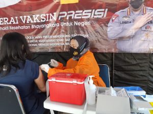 “Kegiatan ini terus kita lakukan dalam rangka program percepatan Vaksinasi Nasional dan Hari Bhayangkara ke 75,” ujar Nur Jannah.