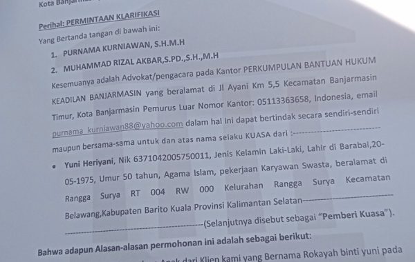 pihak Pengacara, yang sebelumnya berkirim surat ke pihak RSUD Ulin Banjar Masin menanyakan perihal kasus ini.
