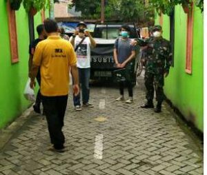 Dalam Karbaknya anggota Koramil 04/Ciledug melakukan, penyemprotan disinfektan dan pengecatan tembok.
