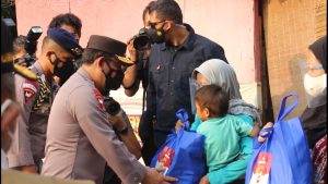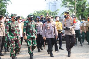 Rombongan Kapolri, Panglima, didampingi Kepala BNPB Letjen Ganip Warsito, tiba di Gang Antasia, Kelurahaan Mangga Dua Selatan, Kecamataan Sawah Besar, Jakarta Pusat, sekitar pukul 15.00 WIB. “Kita apresiasi kegiatan ini, yang betul betul menyentuh masyarakat, yang memang sedang sulit dimasa pandemi ini,” kata Panglima TNI Marsekal Hadi, diamini Kapolri.