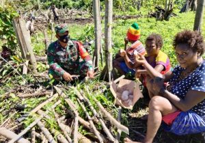 Siriwo,targethukum.cim ~ Bertempat di Kampung Unipo Distrik Siriwo Kab.Nabire, Babinsa Koramil 1705-07/Siriwo (Sertu Purwanto) melaksanakan kegiatan Komsos dengan petani di daerah binaan.
