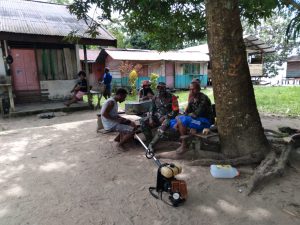 Nabire ,targethukum.com~ Dalam rangka menjalin hubungan baik serta menjaga silaturahmi antar Babinsa dan Masyarakat Binaan Babinsa Koramil 1705 -03/Kwatisore serda Stagus Pikei melaksanakan Komsos dengan tokoh Masyarakat di Kampung Teluk Umar Distrik Kwatisore Kab. Nabire, Rabu (28/4/21).