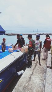 Babinsa Koramil 1708 -04/Supsel Membantu pengiriman Logistik Ke Pulau Rani Distrik Kepulauan Aruri Kab Supiori, Minggu (12/12/2021).