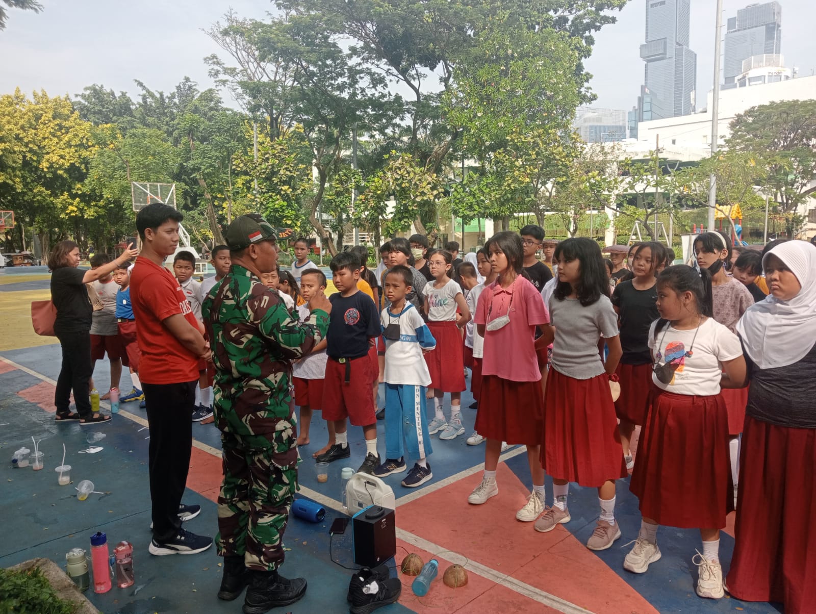 Jakarta, Targethukum.com-Babinsa Kelurahan Menteng Sertu Rimun memberikan pengarahan kepada para murid SDN 01/Menteng bertempat di lapangan Taman Menteng Jl. Moh. Yamin, Menteng, Jakarta Pusat.