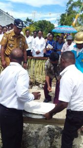 Biak Timur, Babinsa merupakan ujung tombak satuan kewilayahan dan selalu hadir di tengah- tengah masyarakat pada berbagai kegiatan di Desa binaannya, seperti halnya dilakukan Babinsa Posramil-01/Biak Timur Serda Nahor Awete yang menghadiri kegiatan peletakan batu pertama pembangunan pagar Gereja Bait El Aryom Soryar Desa Soryar Distrik Biak Timur.