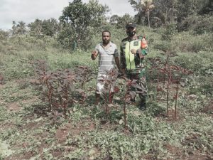 Seperti halnya yang dilakukan Babinsa Posramil-01/Biak Timur Sertu Wahyu Hendro Patrias Setiawan melaksanakan pendampingan kepada warga petani untuk merawat tanaman, dengan membantu membabat rumput di lahan kebun sayur bayam merah milik saudara Yohanes Sabarofek salah satu poktan warga Desa Kajasbo.