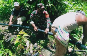 Waropen ,Targethukum.com – Untuk membantu warga binaannya yang sedang kesusahan mendapatkan air bersih akibat pipa saluran air yang rusak, Kopda Zaenal Saparang Babinsa Koramil 1709-03/Warbah Kodim 1709/Yawa membantu warganya di Kampung Sawara Jaya SP 6 Distrik Waropen Bawah Kab. Waropen memperbaiki kerusakan pipa saluran air bersih, Sabtu (08/05/2021).