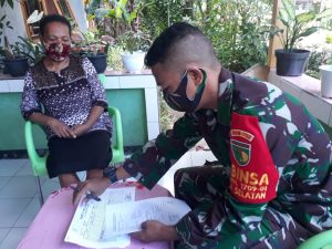 Dalam komsosnya, Serda Aridona menyampaikan bahwa kami menjalankan perintah dari komando atas agar mendata para Purnawirawan dan Warakawuri yang akan divaksinasi Covid-19, dan tidak lupa kami mengingatkan juga agar selalu mematuhi protokol kesehatan dan selalu gunakan masker apabila keluar rumah.