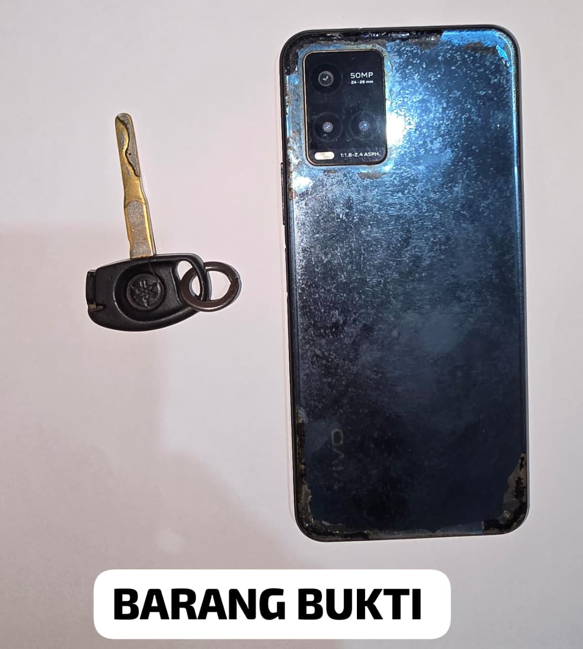 Barang bukti yang diamankan berupa sebilah keris beserta sarungnya, sepeda motor Yamaha Mio KT-3854-UV, sebuah flashdisk berisi rekaman video, dan ponsel milik pelaku. Atas perbuatannya, pelaku dijerat Pasal 2 ayat (1) UU Darurat Nomor 12 Tahun 1951 jo Pasal 335 ayat (1) jo 336 ayat (1) jo 368 ayat (1) KUHP.
