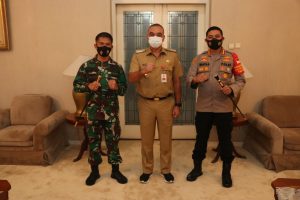 Dandim 0510/Trs Letkol Inf Bangun I E Siregar bersama Forkompimda Pemberlakuan Pembatasan Kegiatan Masyarakat (PPKM) Wilayah Tangerang Raya dalam rangka menindak lanjuti Intruksi Menteri Dalam Negeri No.1 Tahun 2021 Tentang Pemberlakuan Pembatasan Kegiatan Masyarakat untuk Pengendalian Penyebaran Covid 19, kehiatan di gelar di Gedung Pendopo Kabupaten Tangerang Jl. Ki Samaun No.1 Kelurahan Sukasari Kecamatan Tangerang Kota Tangerang, Senin (11/01/2021).