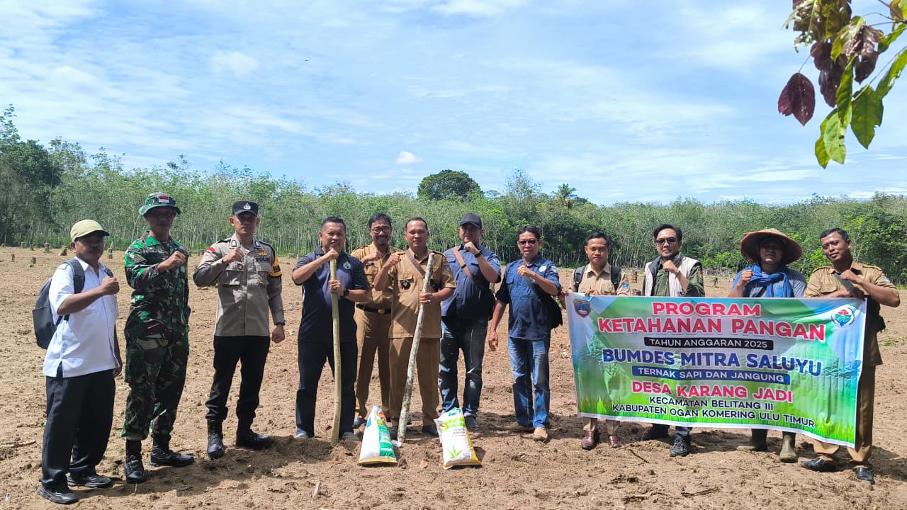 Oku Timur,www.targethukum.com-Bhabinkamtibmas Polsek Belitang III Bripka Dwi Kurnianto melakukan pendampingan penanaman tanaman jagung ketahanan pangan di lahan milik Masyarakat Desa Karang jadi Kecamatan Belitang III, Kamis (27/Nov/2025).