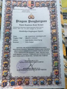 Pada saat pemberian Anugerah Piagam Penghargaan Ungkap Kasus tersebut,tampak sosok seorang Polisi Wanita mendapatkan Piagam,yakni diadakan di Mako Polres Kampar pada Kamis,1/7.21, Briptu Wahyuni Nainggolan yang sekarang ini bertugas di Polsek Tapung sebagai Banit Reskrim Polsek Tapung kecamatan Tapung, kabupaten Kampar Riau.