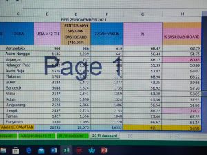 “Kami dari unsur Forkopimcam, Puskesmas, Kepala Desa berkomitmen akhir tahun akan memenuhi target capaian 75%,” ujarnya minggu 28/11