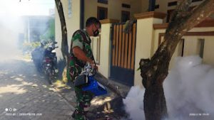 penyebaran DBD Babinsa Kelurahan Sukabakti, Koramil 02/Curug, Kodim 0510/Trs melakukan Penyemprotan fogging dalam rangka mencegah penyebaran penyakit DBD di Perumahan Griya Karawaci Kelurahan Sukabakti Kecamatan Curug Kabupaten Tangerang, kemaren.