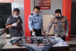 “Hari ini kita laksanakan tes urine bagi pegawai dan pemusnahan barang bukti berupa Handphone hasil penggeledahan di blok hunian warga binaan, agar tidak ada lagi benda yang berpotensi menjadi sarana untuk mempermudah peredaran narkoba didalam lapas,” terang Kalapas.