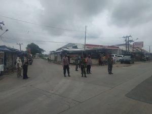 Cuaca mendung tak dijadikan alasan untuk menjalankan tugas, Koramil 08/Kronjo bersama 3 Pilar terus melakukan operasi PPKM di simpang 4 jalan Raya Kronjo Kabupaten Tangerang, Rabu (17/02/2021).
