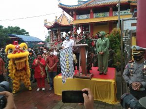 Dandim 0506/Tgr Kolonel Inf Bambang Hery Tugiyono bersama Pangdam Jaya/Jayakarta Mayjen TNI Dudung Abdurrahman dan Danrem 052/Wkr Brigjen TNI Purwito Hadi Wardhono di dampingi Wali Kota Tangerang Arief R Wismasyah, kegiatan di gelar di Vihara Yang Seng Bio Rawa Kucing Kelurahan Mekarsari Kecamatan Neglasari Kota Tangerang, Rabu (10/02/2021).