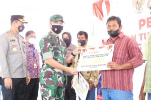 Penyerahan simbolis bantuan ( BTPKLWN ) dilakukan oleh Kombes Pol Zain Dwi Nugroho SH, S,lK, M, SI Kapolres Tangerang bersama Letkol Inf Bangun I. E Siregar, SH., M.I.Pol Dandim 0510/Trs yang diterima langsung oleh perwakilan warga penerima BTPKLWN.
