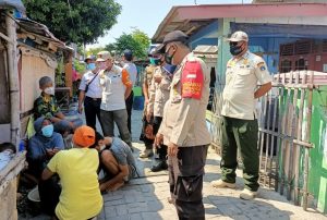 Diketahui, aparat gabungan dengan berjalan kaki melakukan patroli dan mencari pelanggar protokol kesehatan dengan sasaran warga yang tidak menggunakan masker di ruang publik dan lingkungan perumahan.