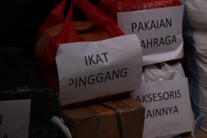 Untuk perlengkapan sandang, terdapat baju batik 320 pcs, sandal 220 pasang, ikat pinggang 110 pcs, pakaian olahraga 110 pcs, kaos oblong polos 200 pcs, dan aksesoris lainnya sebanyak 520 unit.