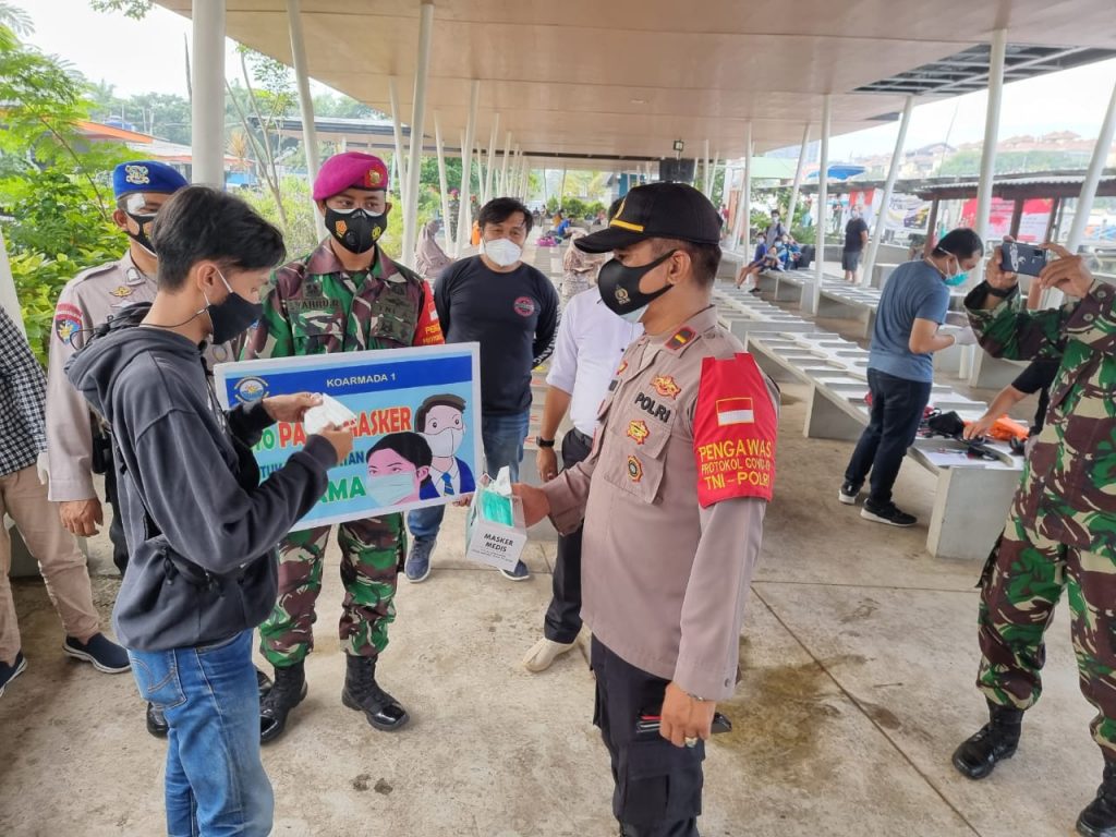 Lewat ujung tombak Polri dalam melayani masyarakar, Sat Binmas Polres Kepulauan Seribu berkolaborasi dengan jajaran TNI AL serta Pemerintah Daerah Kabupaten Administrasi Kepulauan Seribu menggelar kegiatan bagi-bagi masker medis gratis baik di dermaga keberangkatan maupun di pulau-pulau pemukiman.