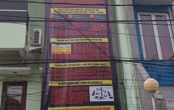 Dalam spanduk yang dipasang di dinding dan pagar rumah, pemilik rumah menyebut eksekusi tersebut sebagai bukti kekejaman “neo-kolonialisme Jepang” dan kezaliman mafia hukum di Indonesia. Mereka menuding SMFL melakukan rekayasa tagihan, penggelembungan utang, hingga manipulasi proses Penundaan Kewajiban Pembayaran Utang (PKPU) demi merebut aset yang bernilai jauh lebih tinggi dibandingkan modal awal.