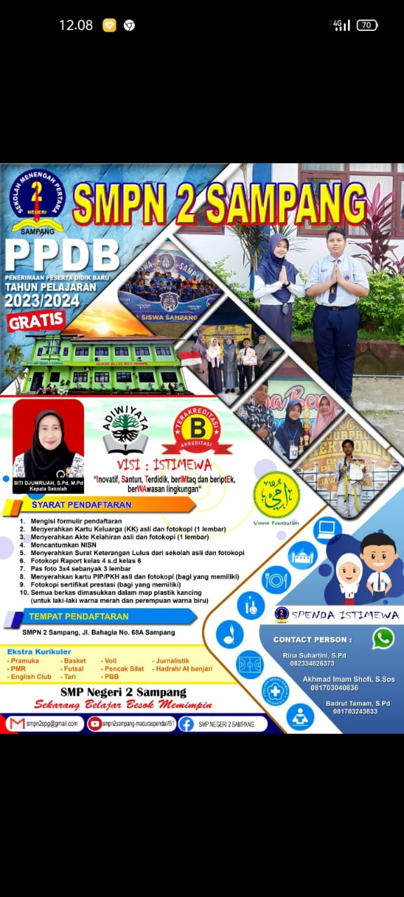 Ditambahkan saat ini masih proses menggodok Juknis, tetapi jika ingin mendaftar mulai sekarang silahkan datang ke UPTD SMPN 2 Sampang
