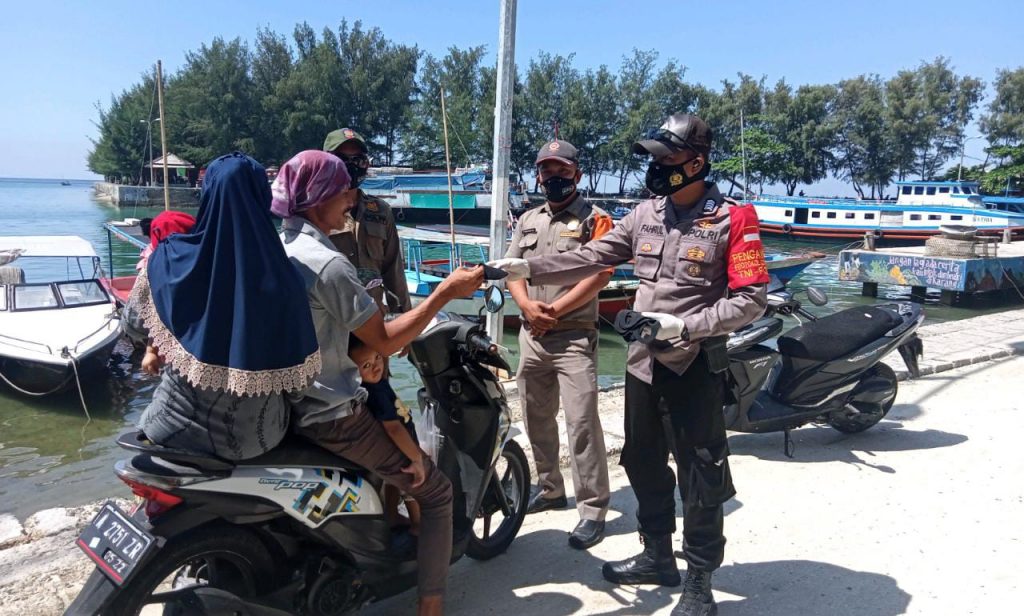 Dalam upaya mencegah penyebaran serta menekan angka kasus aktif Covid-19 di wilayah Kepulauan Seribu, Polres Ke beberapapulauan Seribu bersama unsur TNI serta Pemda selalu menggalakkan kegiatan pemberian himbauan terkait protokol kesehatan baik di dermaga maupun di pemukiman warga. Selain itu, unsur 3 Pilar Kepulauan Seribu turut membagikan masker medis gratis kepada warga bertemakan “Jakarta Bermasker”. Secara keseluruhan, Sinergitas 3 Pilar Kepulauan Seribu memberikan masker medis gratis kepada warga dan wisatawan sebanyak 5800 pcs.