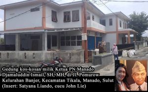 Sebagaimana viral diberitakan di berbagai media online beberapa hari ini bahwa Ketua PN Manado, Djamaluddin Ismail, SH, MH, sedang giat-giatnya membangun gedung kos-kosan mewah di Kecamatan Tikala, Kota Manado, Sulawesi Utara. Gedung kos-kosan yang beralamat di Jl. Pomurow (sebelumnya ditulis Pomoro), Kelurahan Banjer, Kecamatan Tikala, Kota Manado, Sulawesi Utara, ini dibangun hanya dalam waktu lebih-kurang 11 bulan, dengan biaya pembangunan lebih dari 1,5 miliar rupiah.