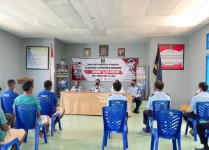 Setelah pengarahan, Kalapas bersama dua orang instruktur menyematkan tanda peserta kepada dua orang perwakilan Warga Binaan Pemasyarakatan (WBP) yang mengikuti kegiatan ini.