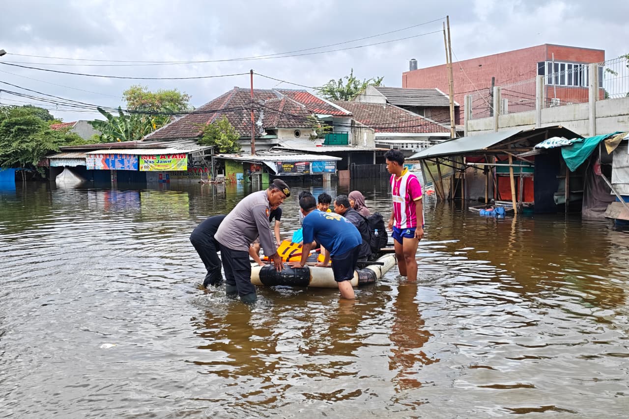Hadir di Tengah Bencana, Polres Metro Tangerang Kota Bantu Evakuasi Warga Terdampak Banjir