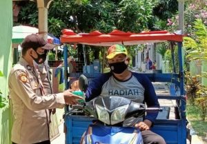 Dia menambahkan, saat membagikan masker pihaknya menyampaikan himbauan terkait ProKes (Protokol Kesehatan) dalam kegiatan sehari-hari dan menjalani pola hidup sehat.