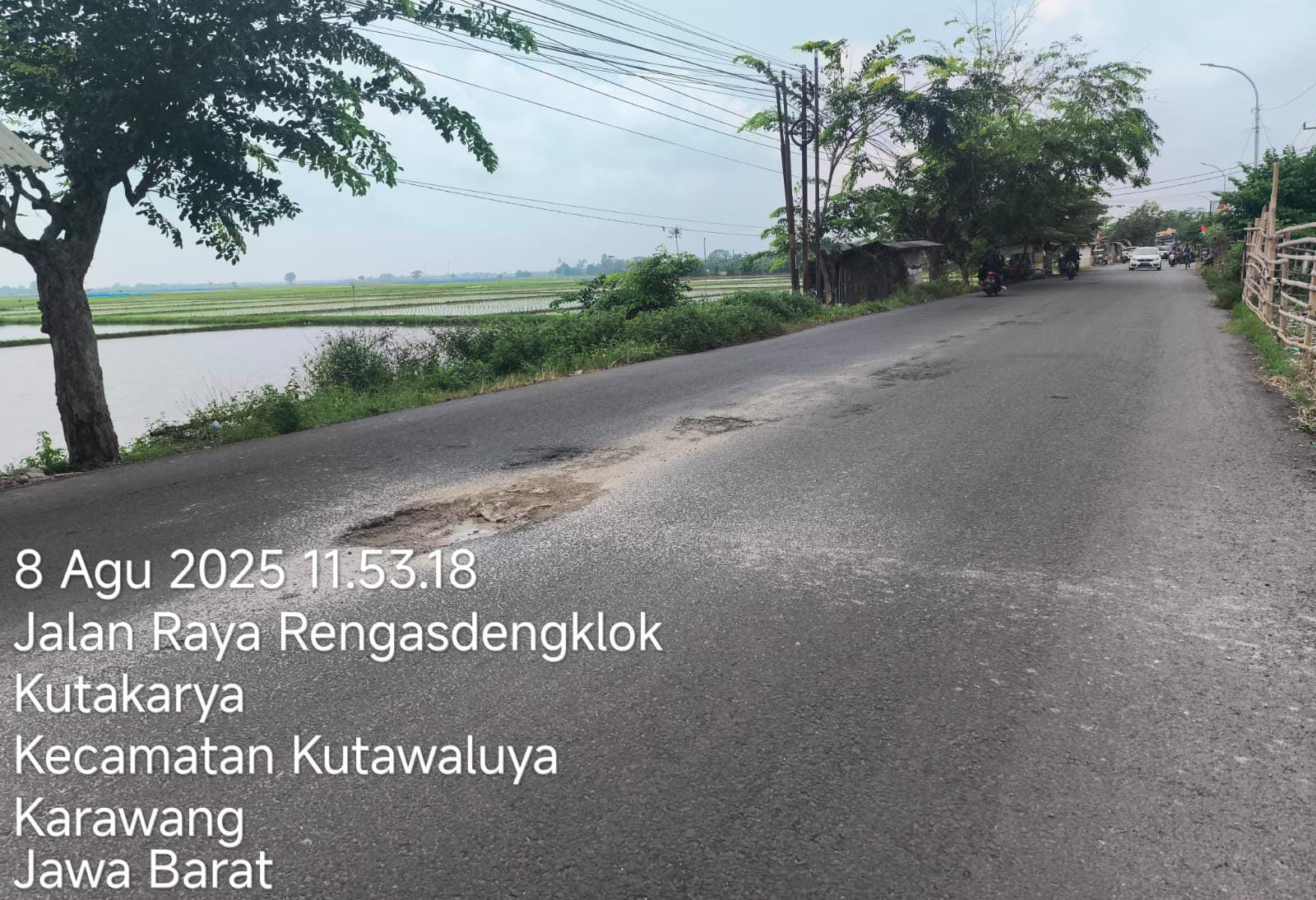 Karawang,www.targethukum.com — Kondisi Jalan Raya Rengasdengklok–Sungaibuntu di wilayah Kutakarya, Kecamatan Kutawaluya, Karawang, menjadi sorotan karena lubang besar yang mengancam keselamatan para pengendara. Titik kritis berada tidak jauh dari SPBU Kutagandok, di mana jalan berlubang dalam dan berada tepat di tengah jalur, membuat pengendara harus melakukan manuver mendadak yang berisiko kecelakaan, terutama saat malam hari dan hujan.