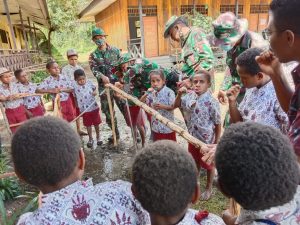 – Menjelang hari jadi Satuan dan dalam rangkaian mendukung Program Anak Indonesia Sehat, Pos Okbibab Satgas Pamtas Yonif 403/Wirasada Pratista bekerja sama dengan Dewan Guru SD YPPK Santa Maria melaksanakan pelatihan tentang pola hidup sehat dan protokol kesehatan (Prokes) kepada siswa-siswi SD YPPK Santa Maria Kampung Abmisibil, Distrik Okbibab, Kabupaten Pegunungan Bintang, Papua.