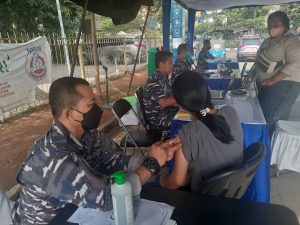 264 warga masyarakat yang berhasil menerima suntikan vaksin jenis Astrazeneca dari 6 orang vaksinator dan tenaga medis Diskes Koarmada I.