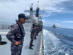 Bertemu di Rendezvous (RV) Point 00 42 935 U – 106 19 559 T pada Kamis (28/04/2022), kedua kapal perang negara bersahabat Indonesia-Inggris ini melakukan beberapa serial latihan.