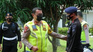Sebelum berangkat, seluruh rombongan mendapatkan arahan dari Dirlantas Polda Banten Kombes Pol Rudi Purnomo tentang kamseltiblancar.