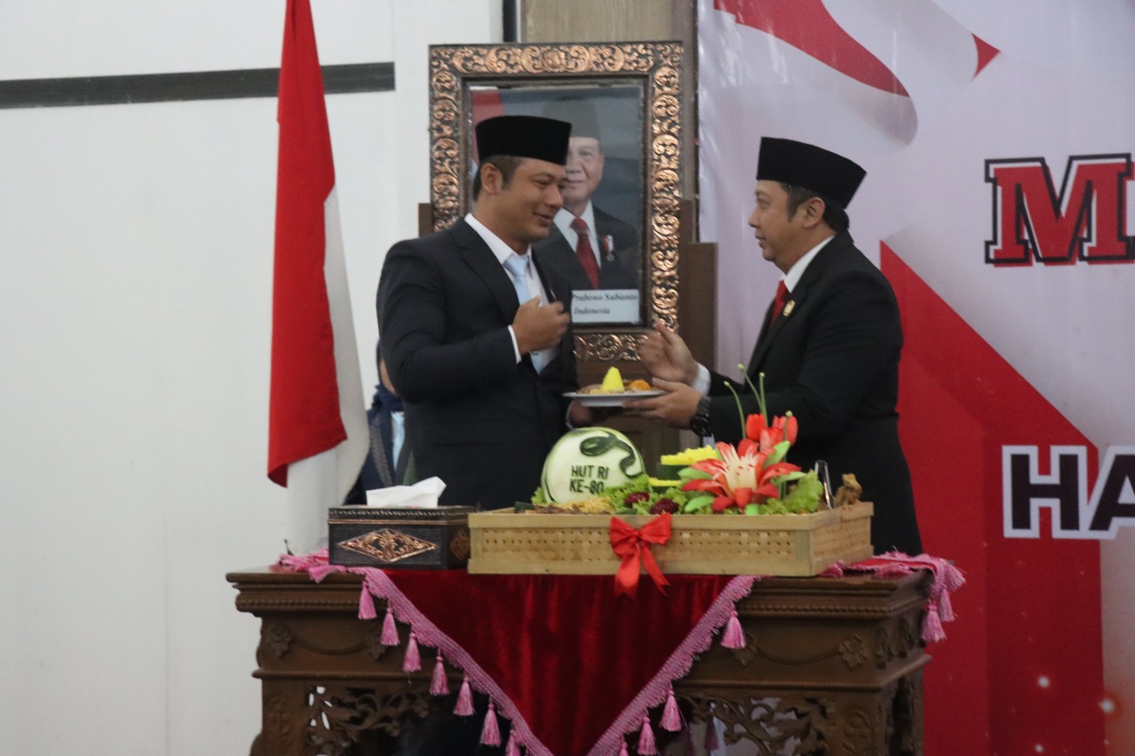 Sebagai wujud rasa syukur, dilakukan pemotongan tumpeng oleh Ketua DPRD Boyolali Susetya Kusuma Dwi Hartanta yang kemudian diserahkan kepada Bupati Boyolali Agus Irawan. Prosesi ini menjadi simbol kebersamaan dan sinergi pemerintah daerah bersama seluruh elemen masyarakat dalam merawat nilai-nilai kemerdekaan.Kapolres Boyolali AKBP Rosyid Hartanto, menyampaikan bahwa tahun ini Indonesia merayakan HUT ke-80 Kemerdekaan RI dengan makna persatuan yang tercermin dalam tema “Bersatu Berdaulat, Rakyat Sejahtera, Indonesia Maju”.
