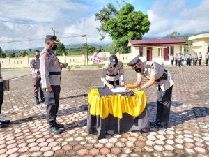 Gayo Lues, targethukum.com|Kapolres Gayo Lues AKBP Carlie Syahputra Bustamam, S.I.K., M.H. Serah Terima Jabatan (Sertijab) terhadap empat perwira dijajaran Polres Gayo Lues, Senin (19/4/2021).