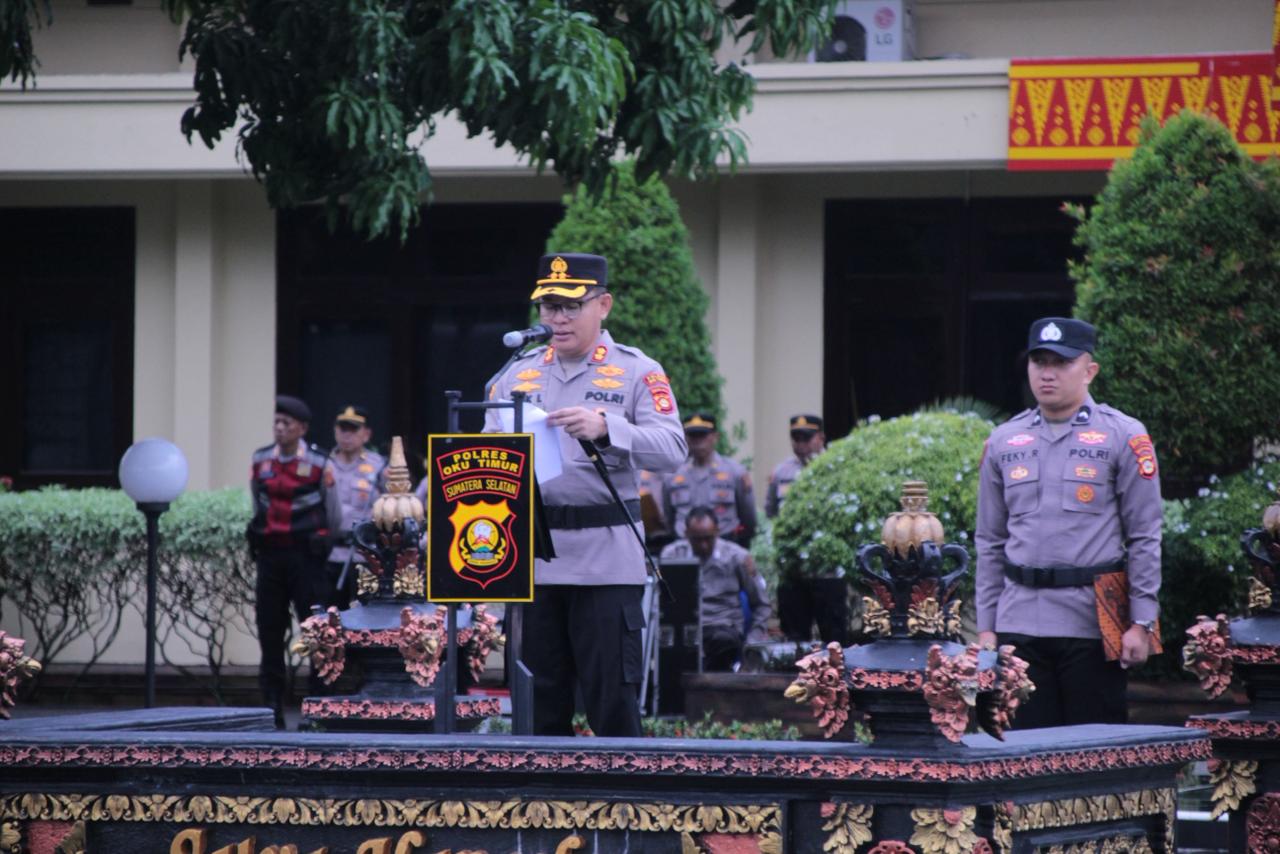 Apel diikuti oleh personel gabungan dari Polres dan Polsek jajaran, Brimob, Satpol PP, Dishub, Basarnas, PLN, serta dihadiri Bupati OKU Timur, pejabat Forkopimda, dan undangan lainnya.