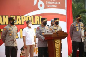 JAKARTA— Kapolri Jenderal Listyo Sigit Prabowo meluncurkan program Iso Tank Polri untuk Indonesia di Pelabuhan Tanjung Priok, Jakarta Utara, Jumat (3/9/2021).