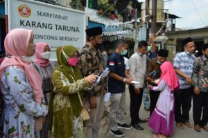 Kegiatan bakti sosial yang digelar di Kantor sekretariat Karang Taruna Kampung Keroncong RW04 Kelurahan Keroncong Kecamatan Jatiuwung Kota Tangerang berjalan dengan prtokol kesehatan.