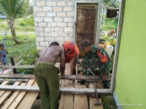 Sebagai bentuk kepedulian terhadap lingkungan dan masyarakat didesa binaan Babinsa Koramil 1708-03 sertu Marandof membantu masyarakat dikampung Kababur membuat dapur disalah satu rumah warga desa guna memenuhi kebutuhan masyarakat didesa binaan yaitu juga bisa digunakan untuk memasak dan kebutuhan sehari-hari.