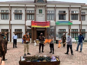Pelaksanakan Pemusnahan Barang Bukti Tindak Pidana Umum tahun 2021 dihadiri oleh Kajari Gayo Lues Ismail Fahmi, SH, Kapolres Gayo Lues yang diwakili oleh Kapolsek Blangkejeren IPTU Syamsul Bahri, Kapolsek, Ketua Pengadilan Negeri Blangkejeren, yang diwakili oleh M. Rizqi Zamzami, SH., Kepala Dinas Kesehatan Kabupaten Gayo Lues, yang diwakili oleh Muhammad Husin, S.KM Para Kasi dan Kasubag Pembinaan Kejari Gayo Lues, Jaksa Fungsional dan Calon Jaksa, serta seluruh staf pegawai pada lingkungan Kejaksaan Negeri Gayo Lues.