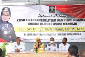 Kepala Badan Penelitian dan Pengembangan Hukum dan HAM (Balitbang Kumham), Sri Puguh Budi Utami, Bc.IP., M.Si mengunjungi Lapas Kelas IIB Waikabubak dan berkenan memberikan arahan singkat pada Rabu (30/03/2022).