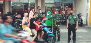 Selain pembagian takjil, Danramil juga membagikan masker kepada masyarakat yang tidak mengenakan masker yang melintas dijalan raya depan Makoramil 04/Cld tersebut .