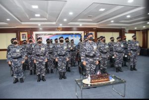 Usai mengikuti upacara virtual, dilaksanakan pemotongan tumpeng sebagai simbolisasi ungkapan rasa syukur dan doa untuk keselamatan Bangsa, para pemimpin dan kelancaran dalam mengemban tugas Koarmada I dimasa mendatang.